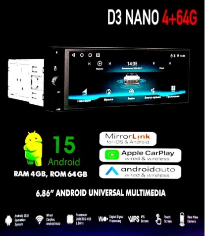 ✅8-ядерный процессор ✅Wi-Fi, Bluetooth, USB ✅Оперативная память 4Gb ✅Внутренняя память 64Gb ✅Кулер охлаждения ✅Экран 1280 x 720 IPS ✅Сarplay / Android auto ✅1 пара RCA +выход на саб ✅Выход под выносной микрофон ✅Усилитель звук YD7388 ✅Поддержка 4G (Sim)